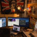 スーパーで買い物をしてYukiさんのオフィスに到着。もう40年もロサンジェルスに住まれていて、色々な仕事をされている彼なのですが、趣味は音楽制作。もうね、趣味と呼べないほどのクオリティ。その彼がオフィスを改造してスタジオを作ったそうで、確か2年くらい前に完成したので、それを見せてもらいに。スタジオはドラムやアンプのあるブースと、録音した音源をミックスダウンするスペースに別れています。